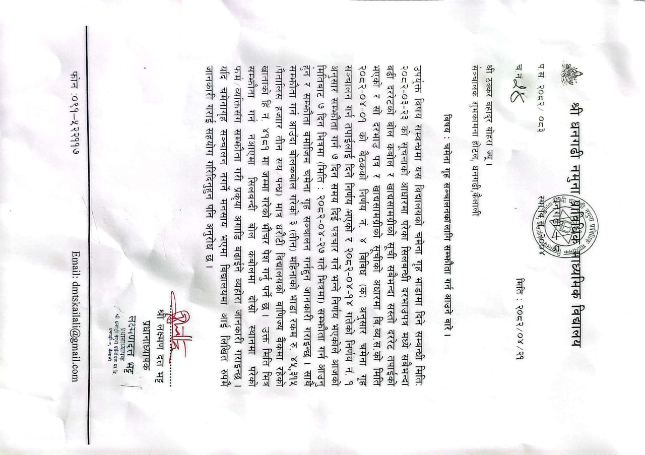 चमेना गृह संचालनका लागि सम्झौता गर्न आउने बारे सूचना