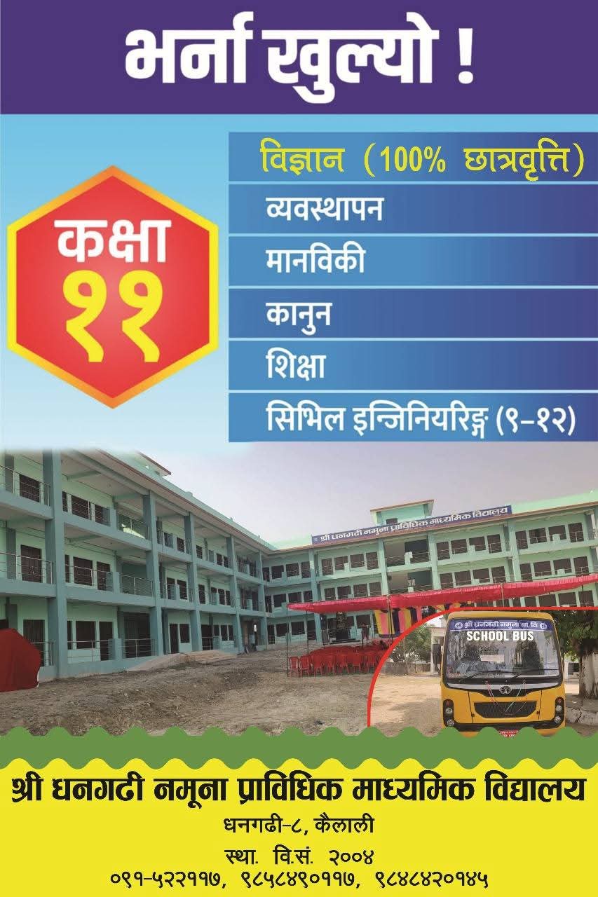 श्री धनगढी नमुना प्राबिधिक माध्यमिक बिद्यालय मा शिक्षक आवश्कता सम्बन्धि सुचना २०८१/०८२
