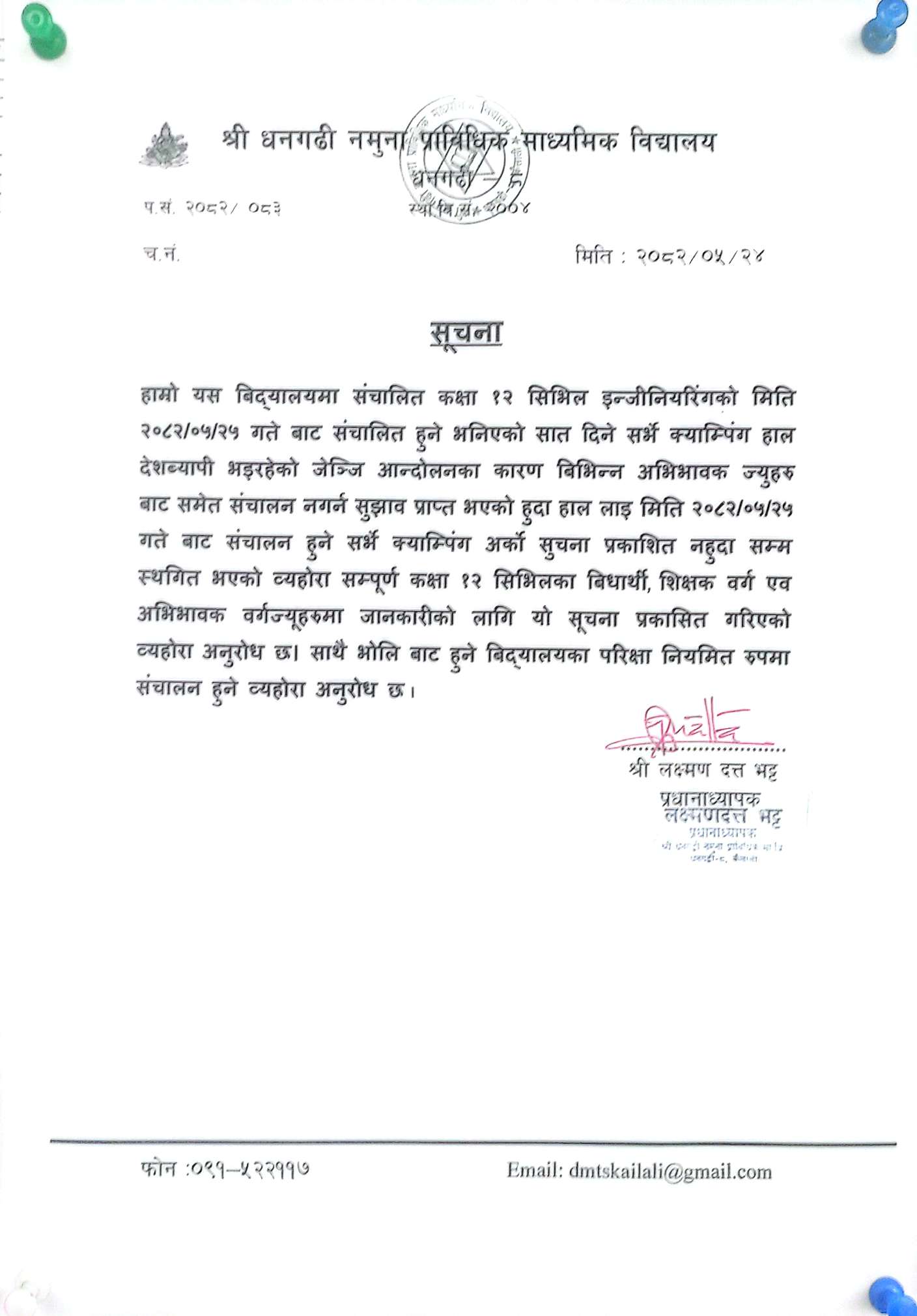 श्री धनगढी नमुना प्राबिधिक मा. बि. मा दोश्रो पटक शिक्षक आवश्कता सम्बन्धि सुचना २०८१/०८२